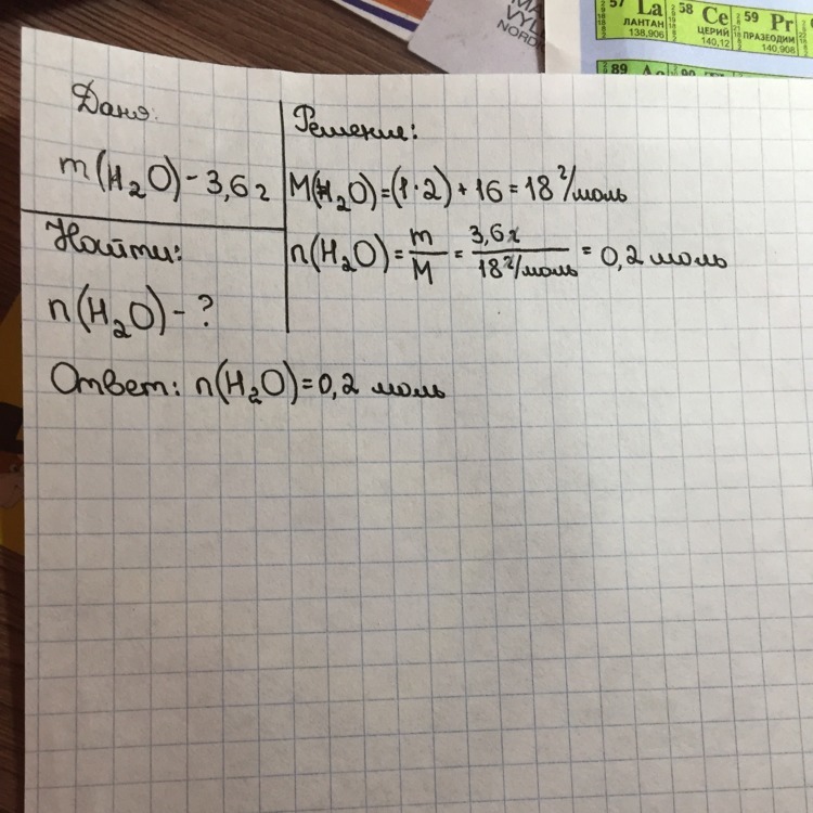 n₁(H₂O)=3,6.÷18г./моль=0,2моль