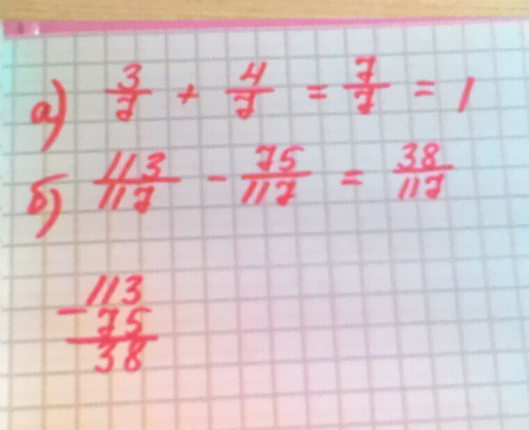 а)3/7+4/7 = 7/7 = 1;