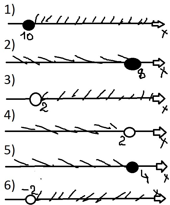 1)x≥-10 2)x≤8 3)x>2 4)x<2 5)x≤4 6)x>-2