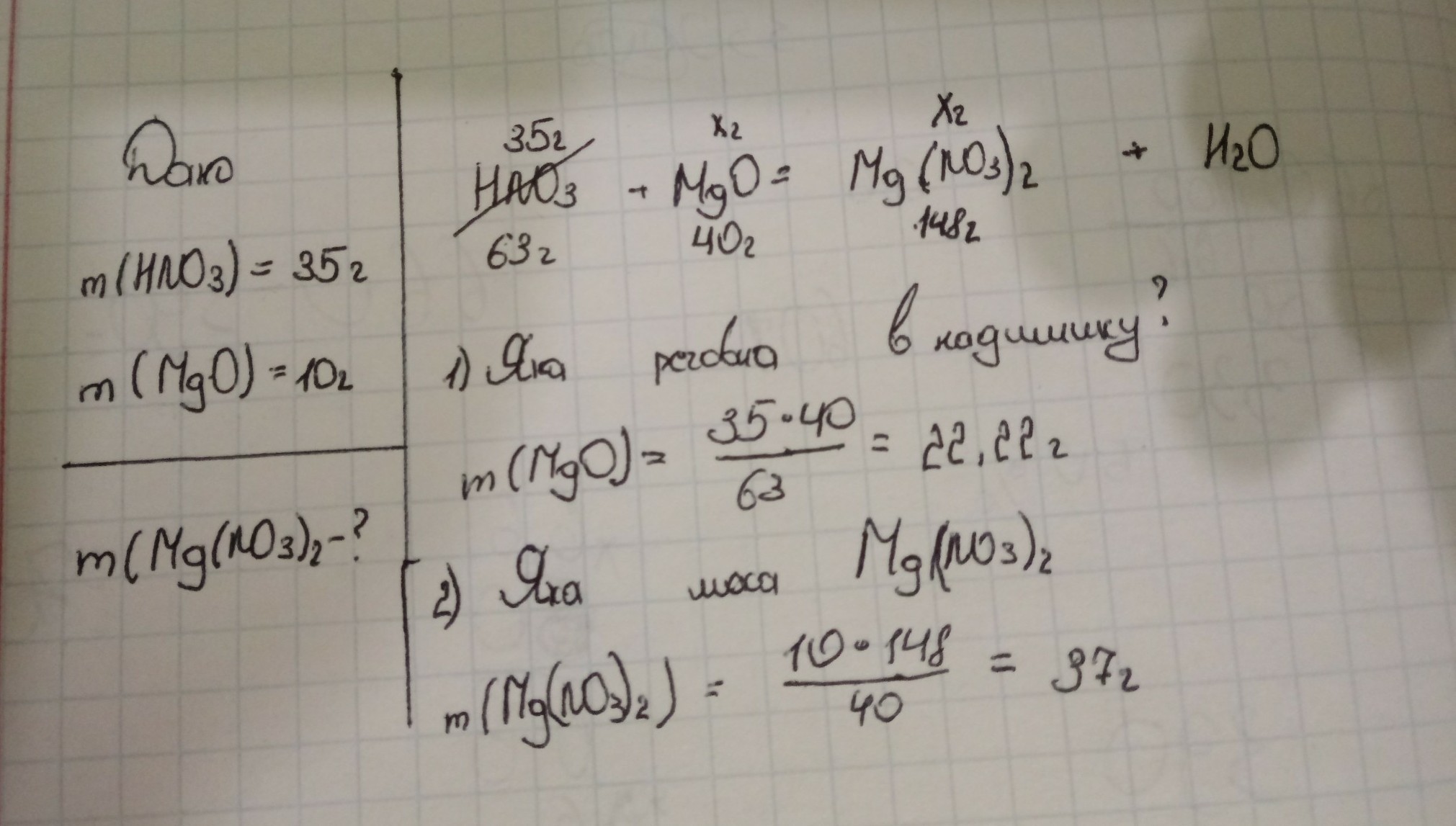 До розчину,що містить 35гр нітратної кислоти добавили 10 гр оксиду магнію.Визначте масу солі що утворилася при цьому.