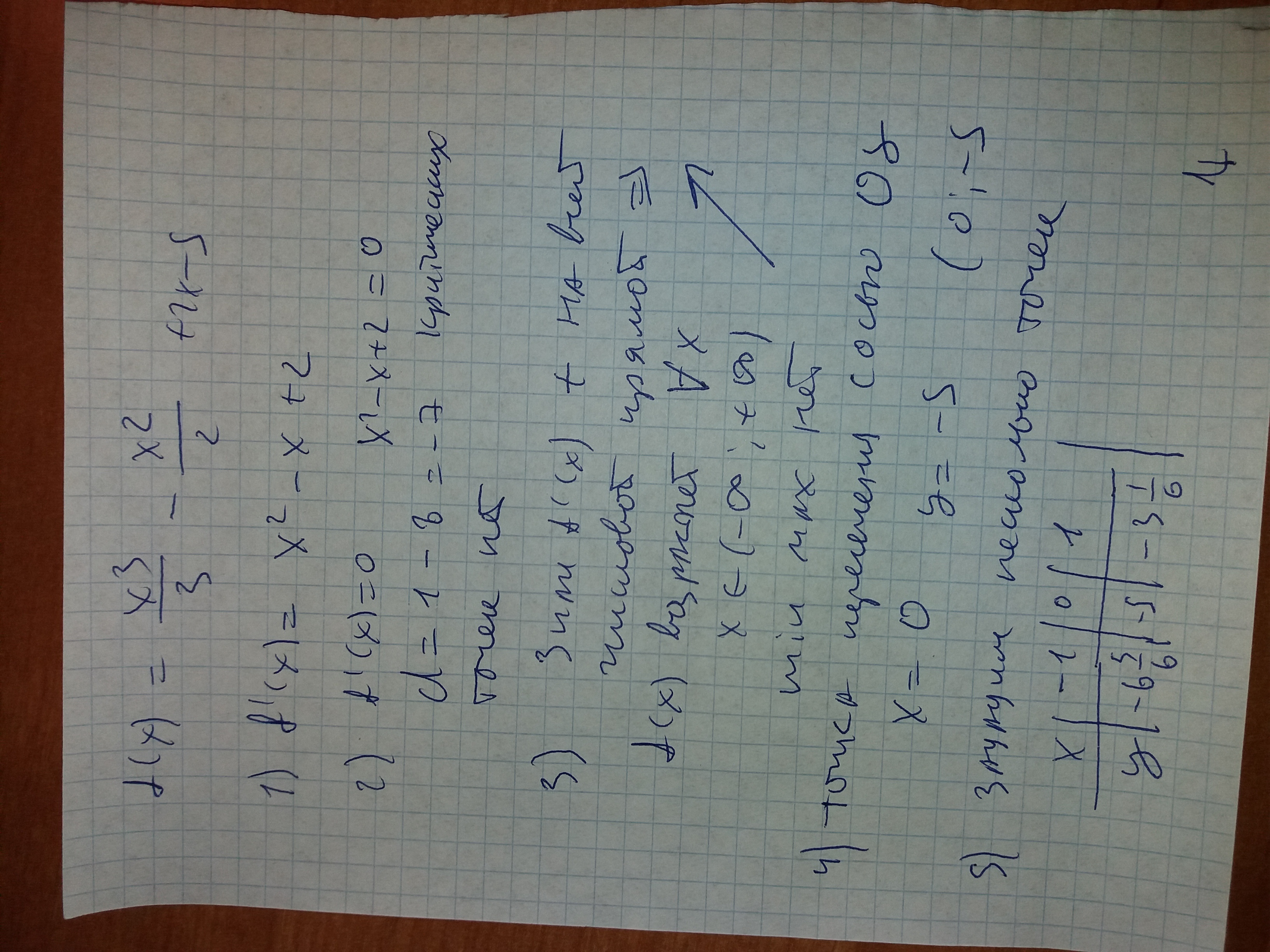 точка пересечения с осью ОХ не найдена так как для этого придется решать кубическое уравнение.