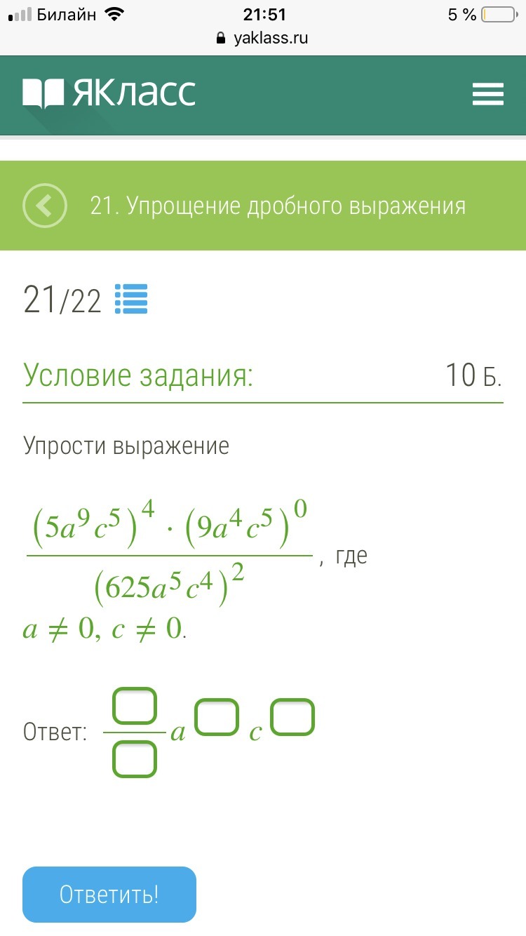 (5a^9c^5)^4*(9a^4c^5)^0/(625a^5c^4)^2=625a^36c^20/625*625a^10c^8=