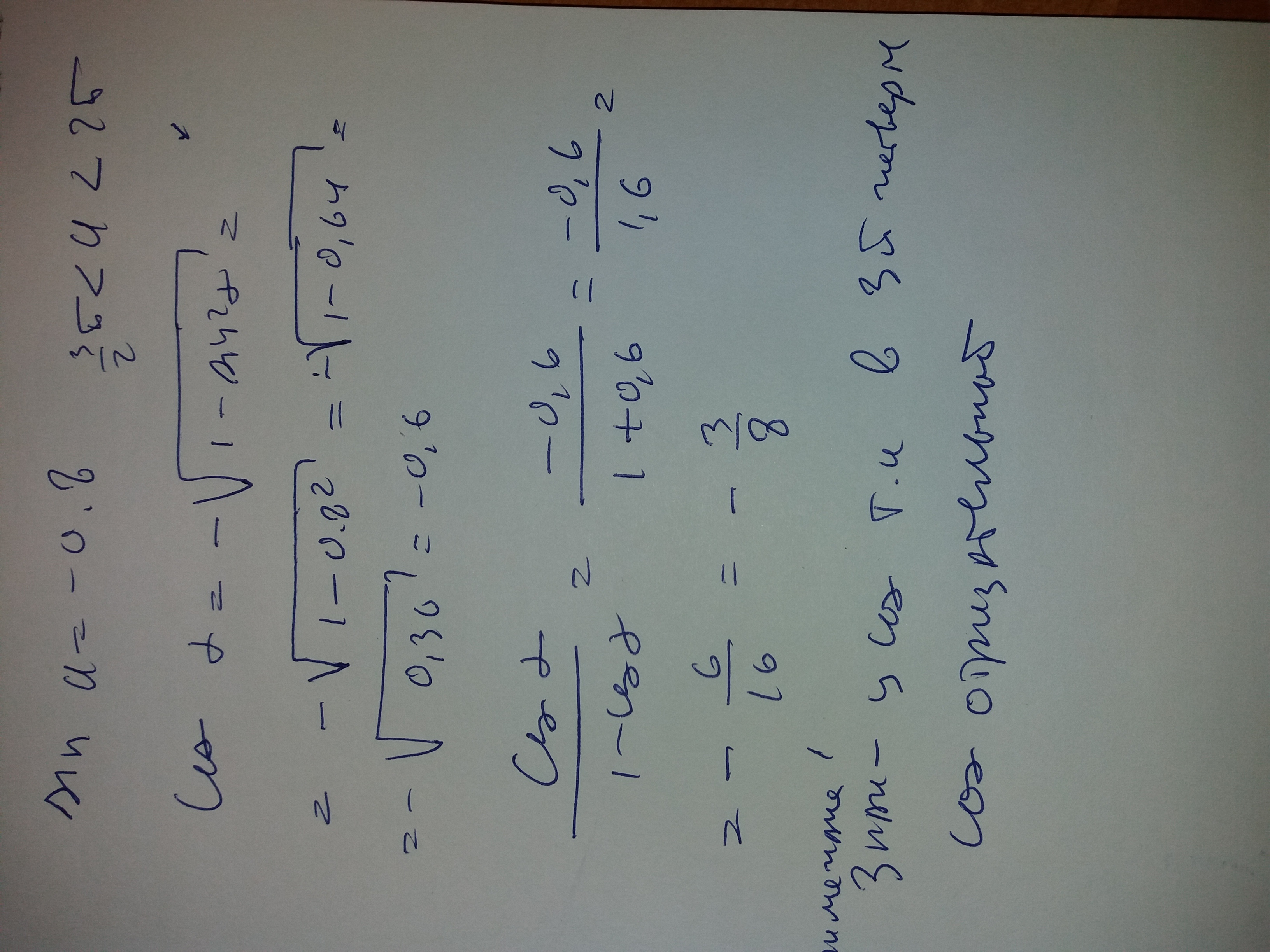 так как угол находится в 3 четверти то знак у cos будет отрицательный