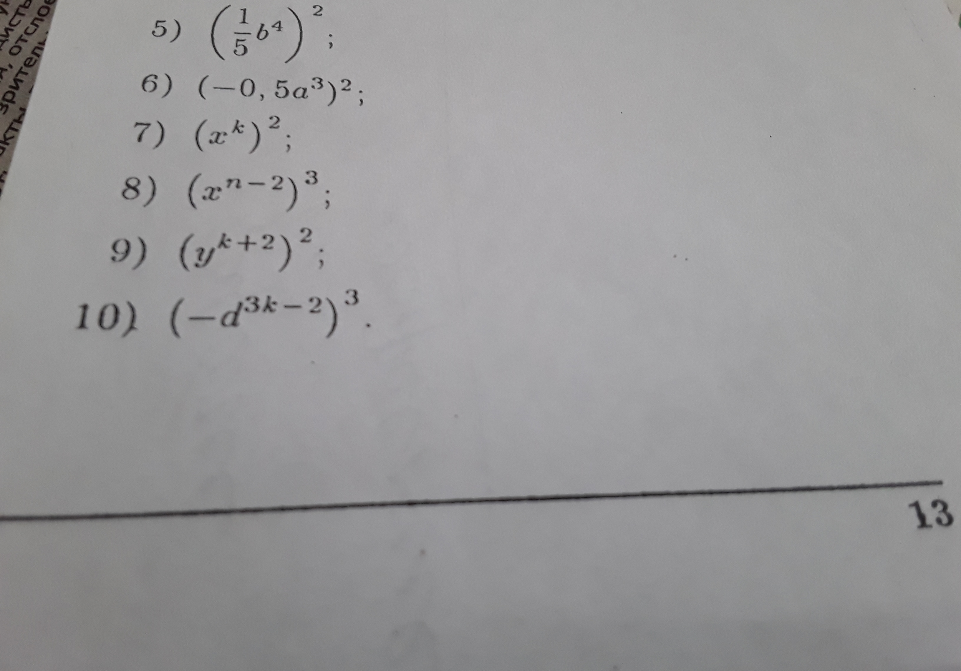 1/25*b^8; 0,25a^6; x^2k; x^(3n-6); y^(2k+4); -d^(9k-6)