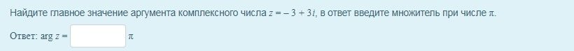 Найдите главное значение аргумента комплексного числа z = – 3 + 3i, в ответ введите множитель при числе π.