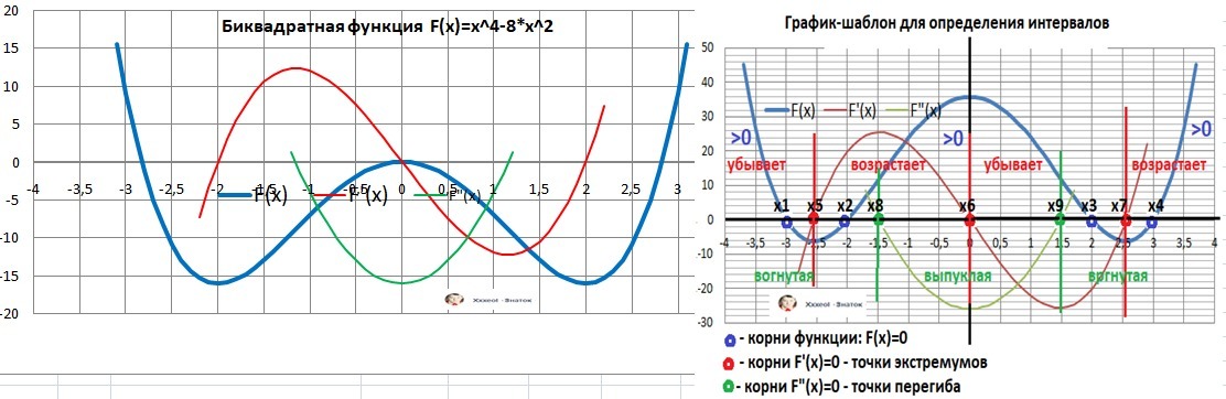 Корни производной - точки экстремумов: x₅=-2, x₆ = 0, x₇ = 2.
