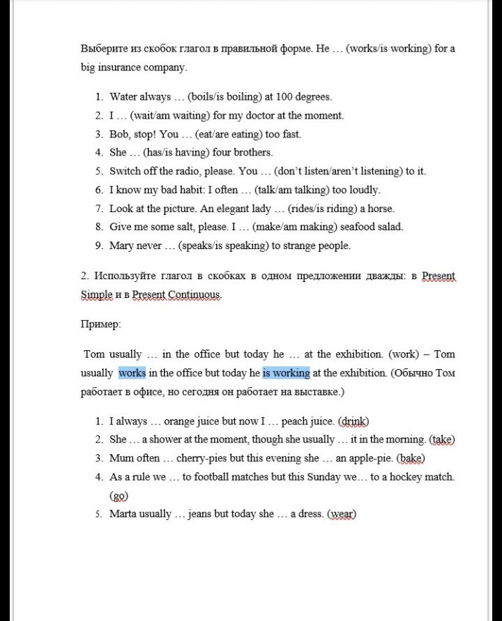 2. is taking, takes