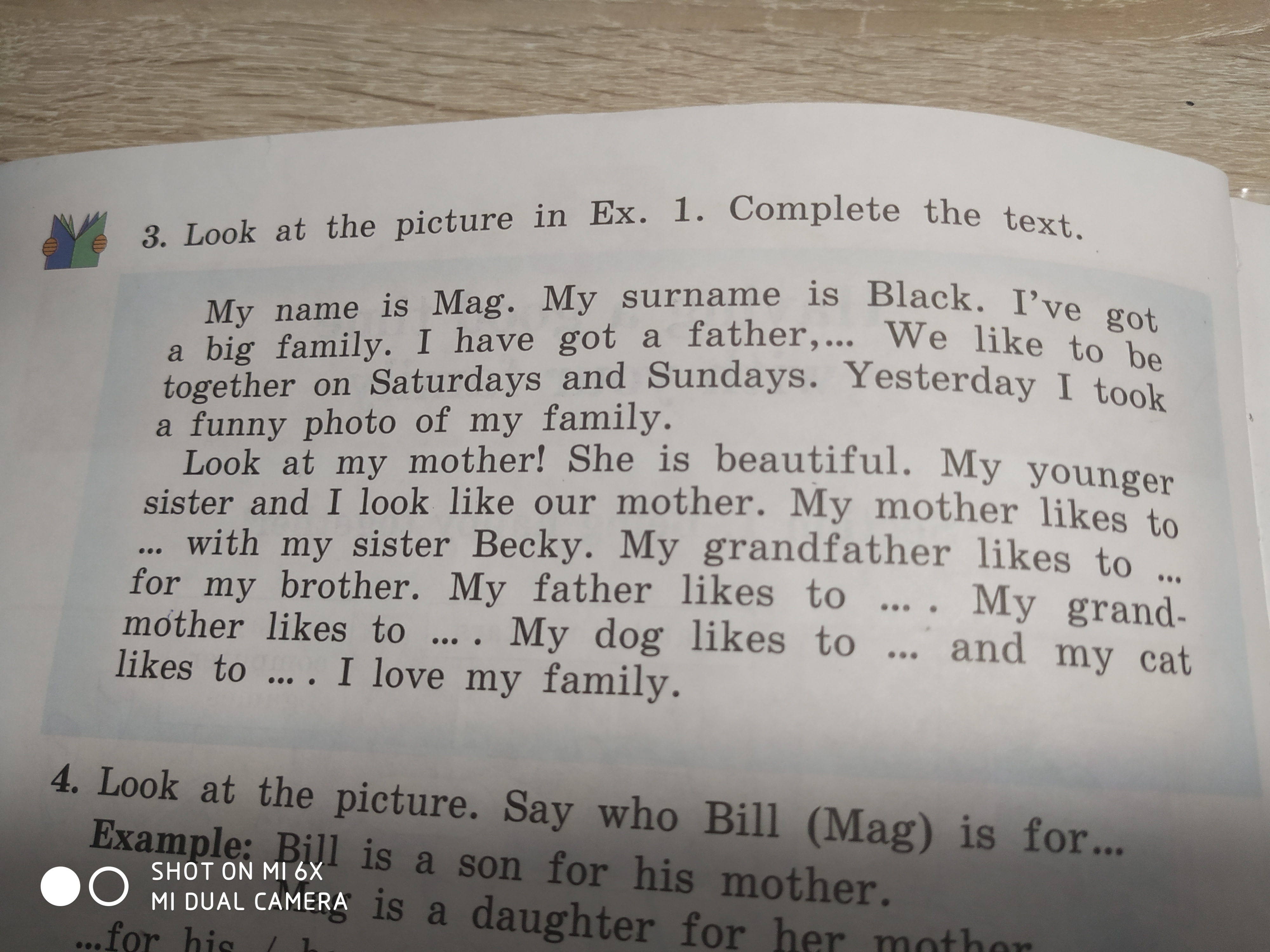 1) I have got a father, a mother, a sister and a brother, a grandmother and a grandfather