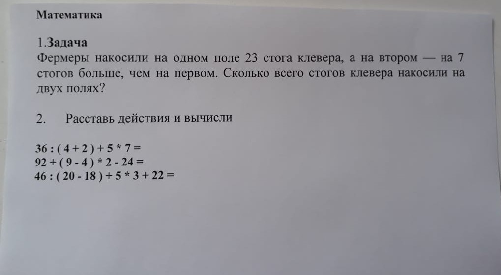 Номер 1: 23+(23+7) = 23+30=53 стога