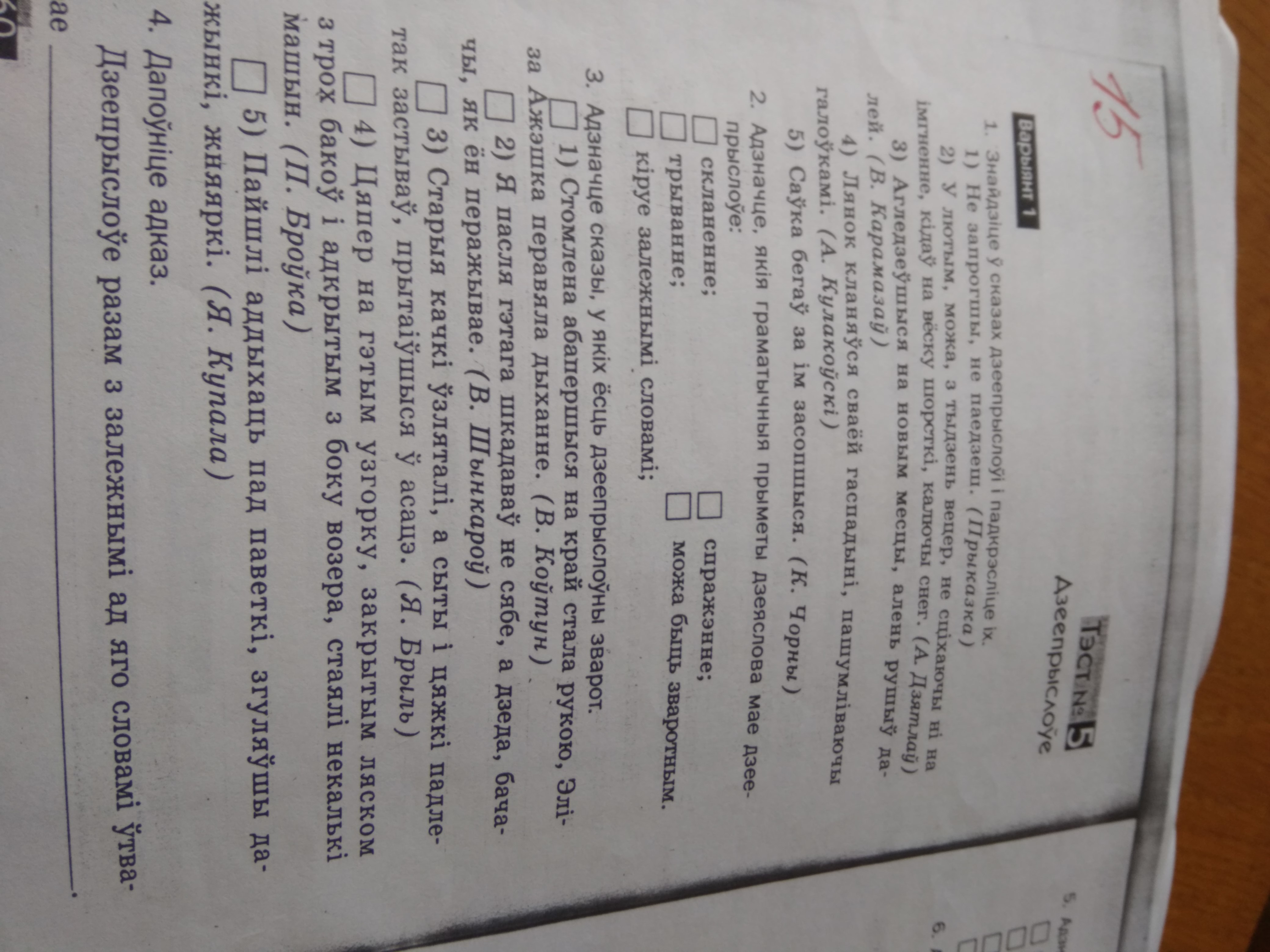 1) запрогшы, 2) агледзеўшыся, 3) не сцихаючы, 4) пашумливаючы, 5) засопшыся
