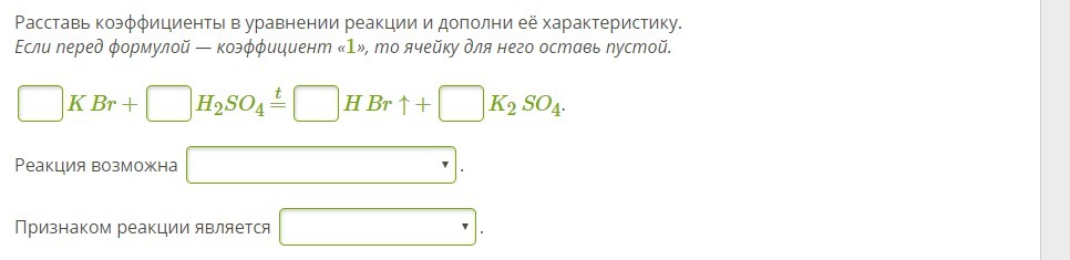 Расставь коэффициенты в уравнении реакции и дополни её характеристику.