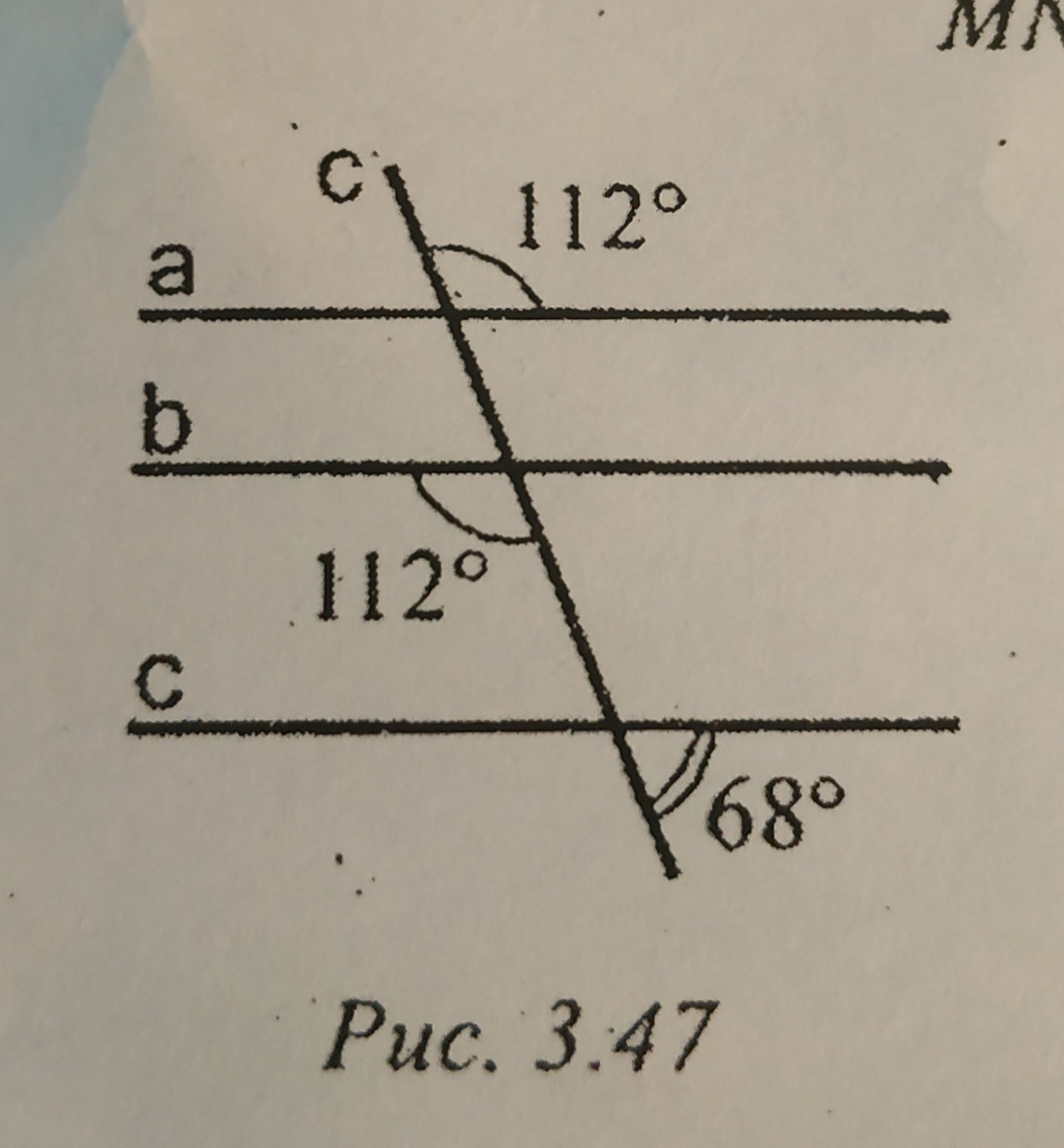 Какие из прямых a, b, c, изображённых на рисунке , являются параллельными?