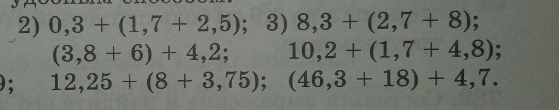 2) 0.3+(1.7+2.5)=4.5