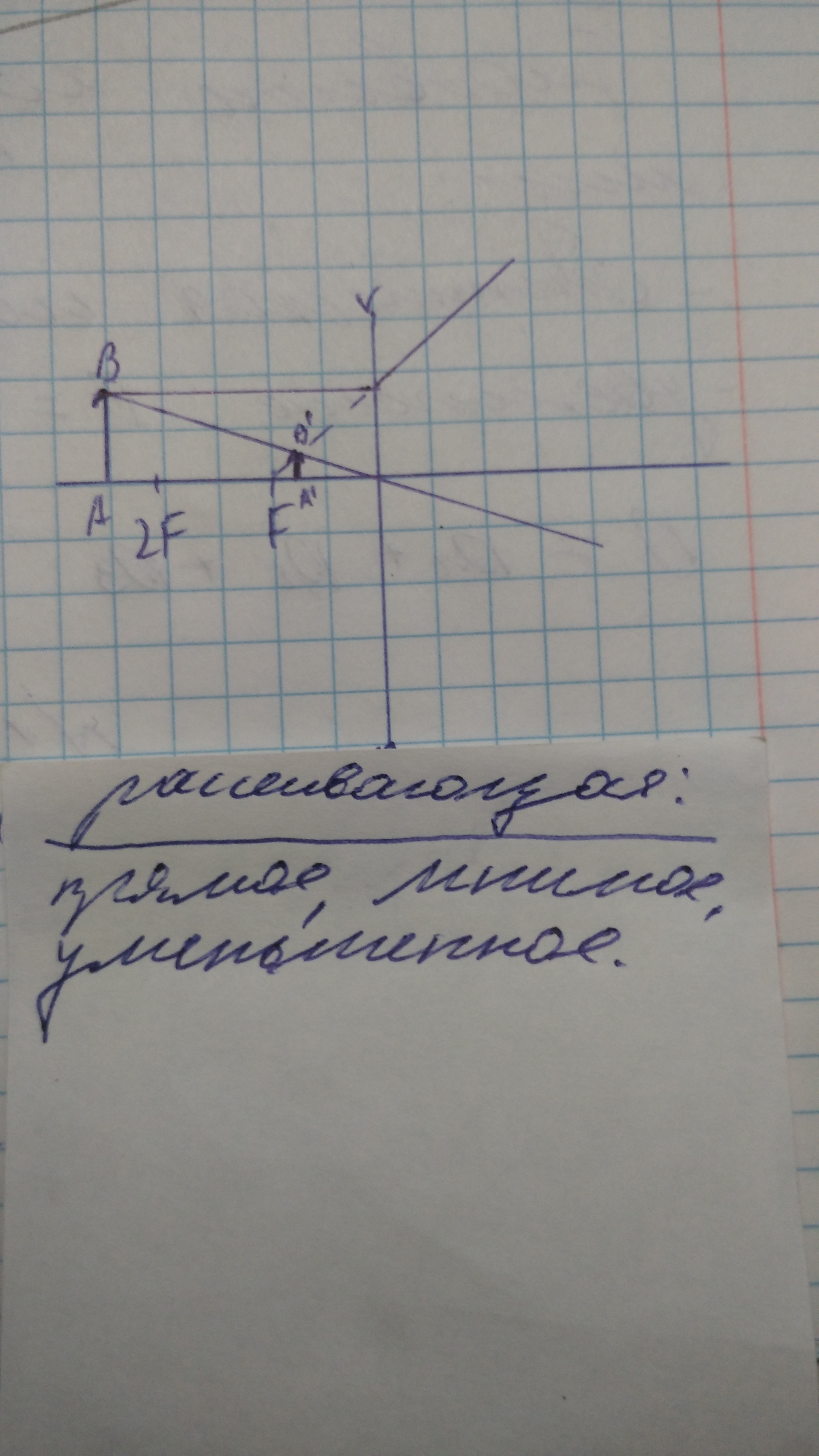Построить изображение, которые дают собирающие и рассеивающие линзы, если предмет расположен за двойным фокусом.