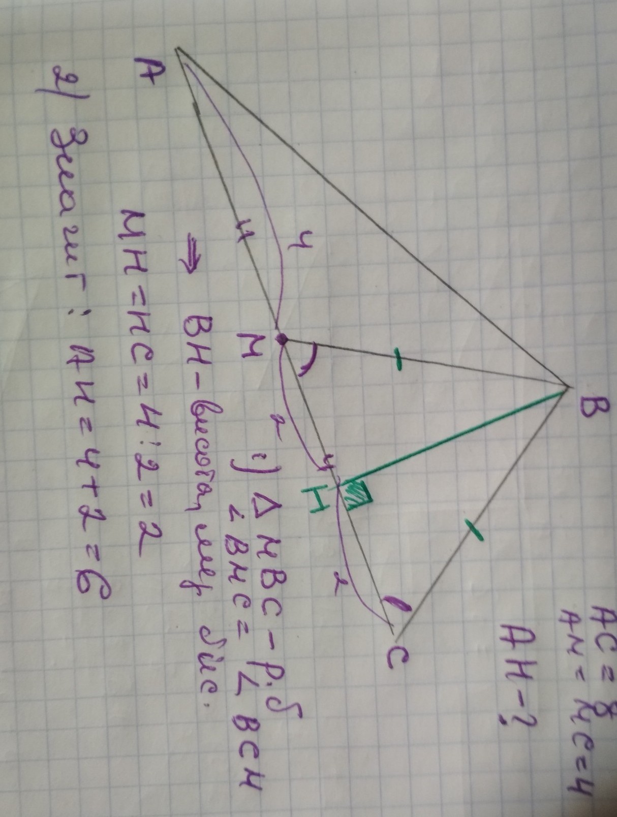 В треугольнике ABC проведены медиана BM и высота BH. Известно, что AC = 8 и BC = BM. Найдите AH.