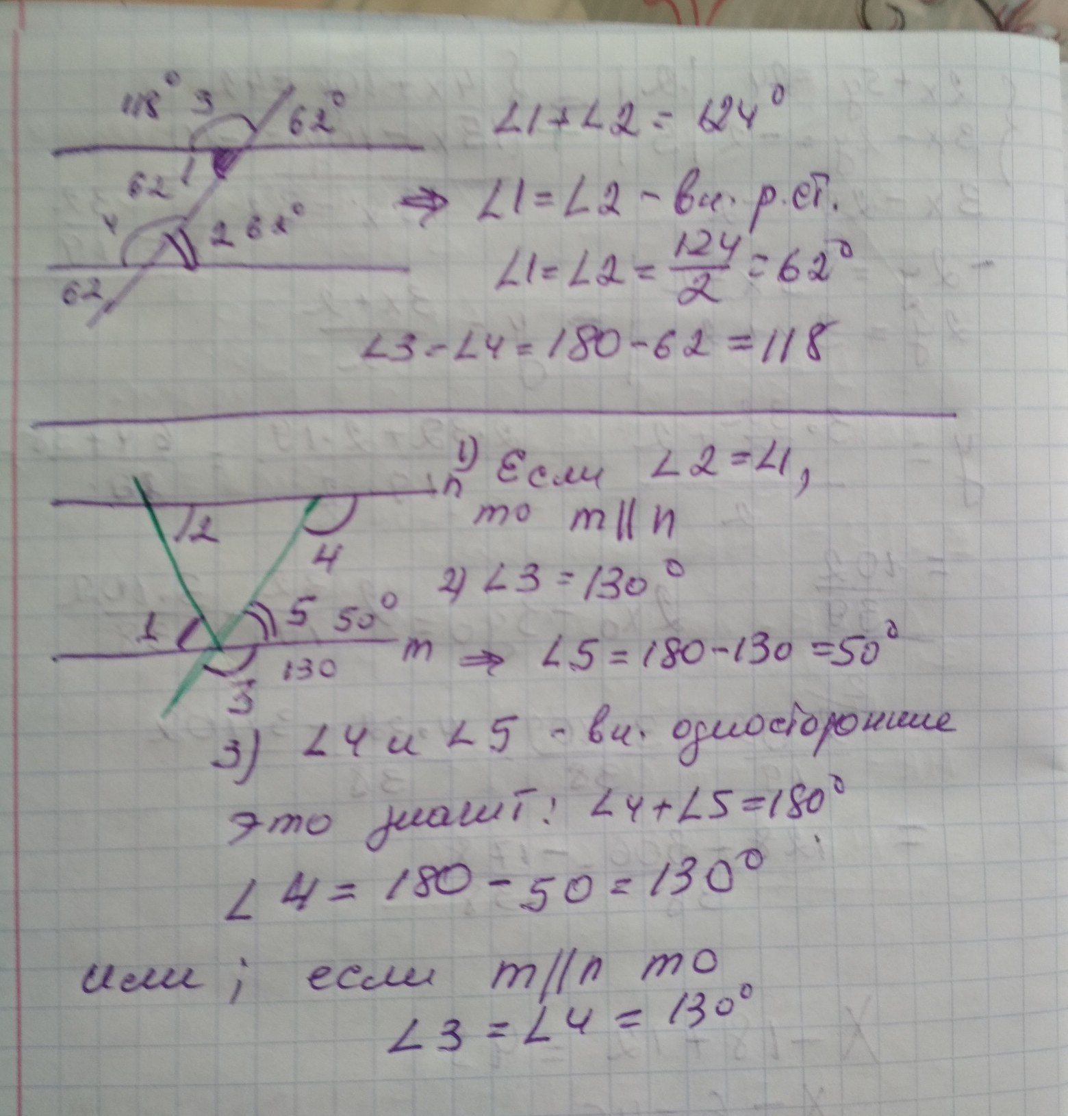 нужно выучить свойства углов при параллельных прямых