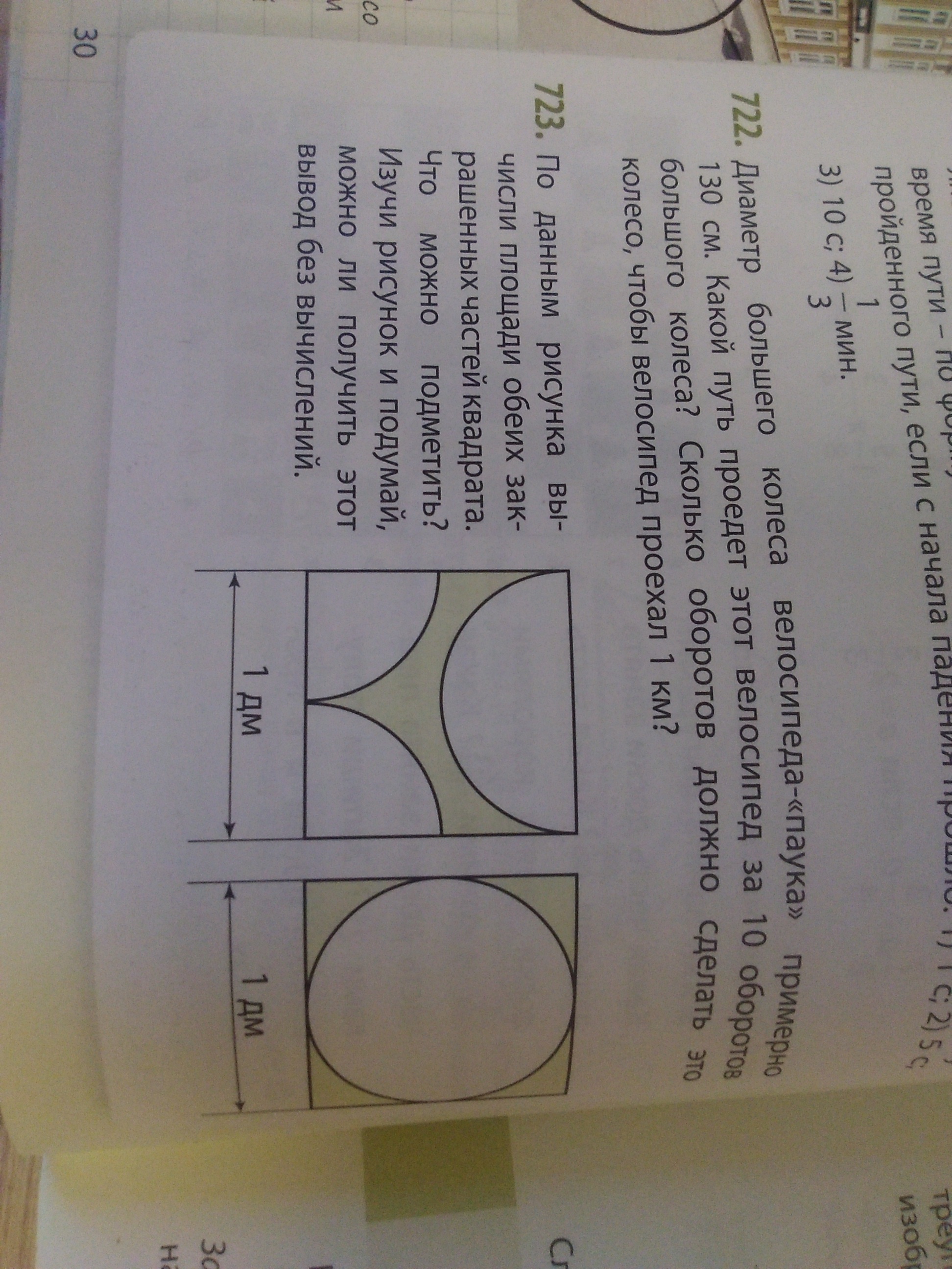 На нем мы видим тот же квадрат и ту же окружность, соответственно, площадь закрашенных частей тоже будет равняться 0,215 дм²
