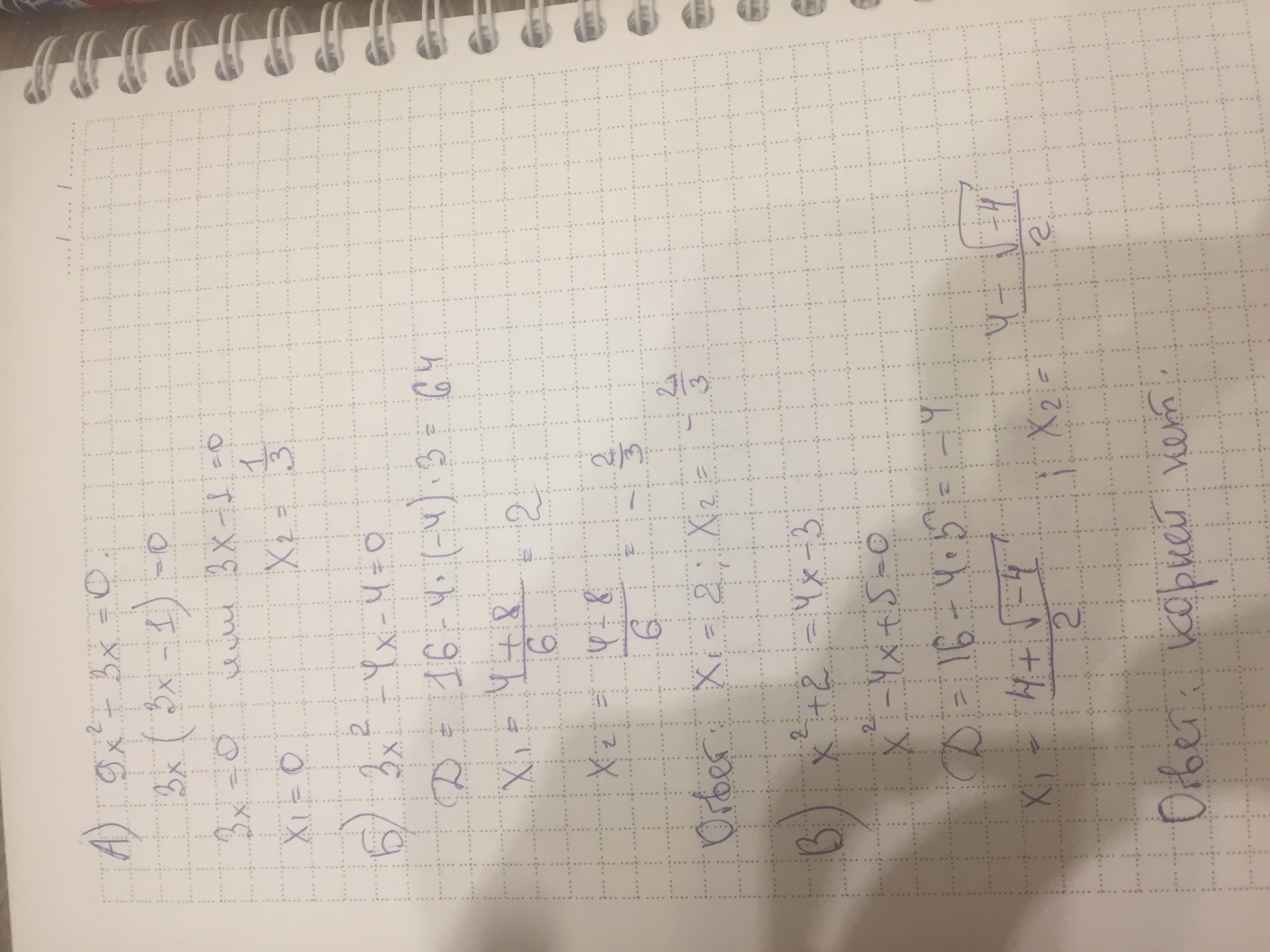 3) Ответ: корней нет. (Дискриминант отрицательный)