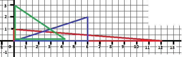Начертить прямоугольный треугольник, площадь которого равна 6 см.кв. Сколько вариантов решения имеет эта задача, если длины катетов - натуральные числа.