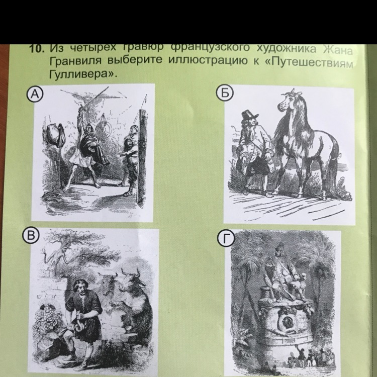 Из Четырёх гравюр французского художника жана Гранвиля выберете иллюстрацию к «Путешествиям Гулливера»