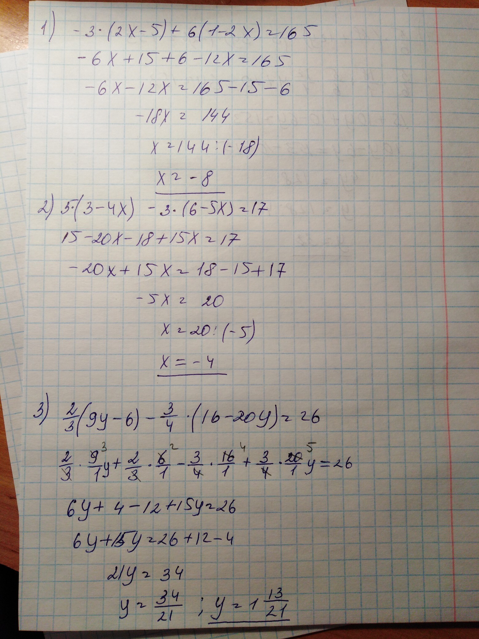 3)2/3×(9у-6)-3/4×(16-20у)=26