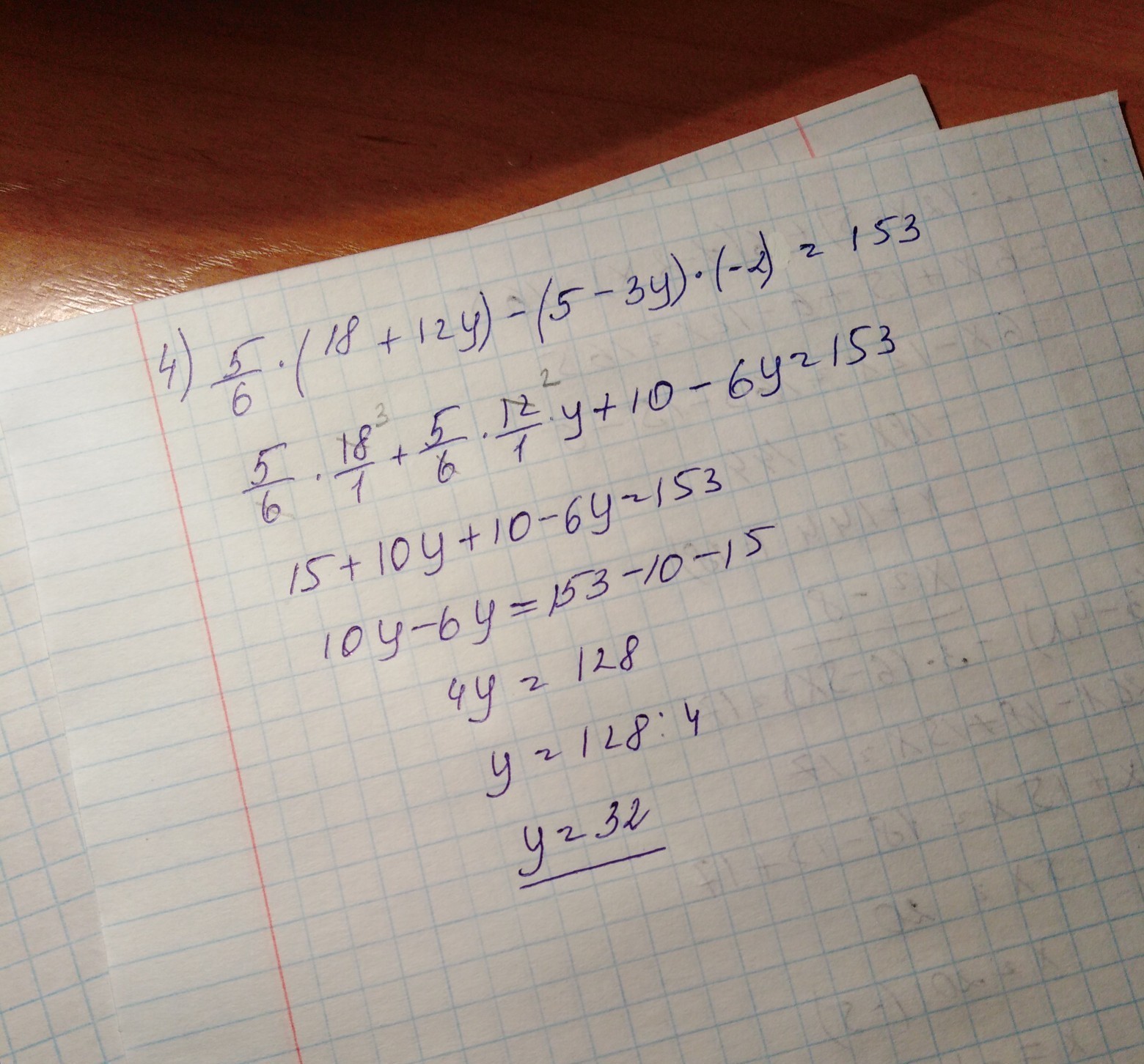 4)5/6×(18+12у)-(5-3у)×(-2)=153