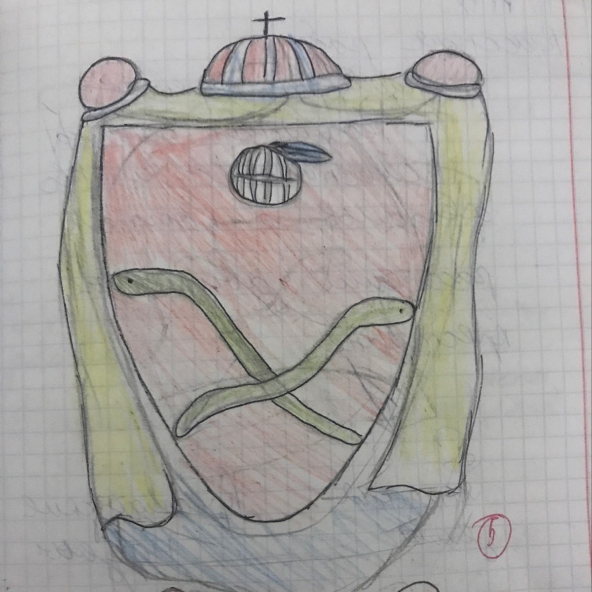 Держи герб который я делала и получила 5, а девиз ниже ( этот герб показывает что для меня главное в жизни это ум и можешь туда Руки добавить как семью) а девиз защита всех и 1