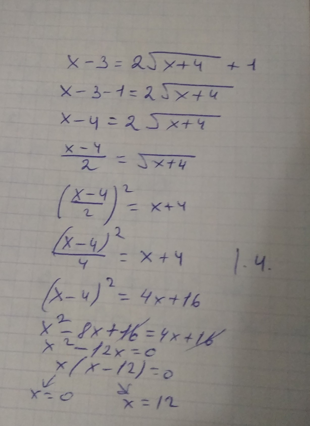 - (x - 4) = 0