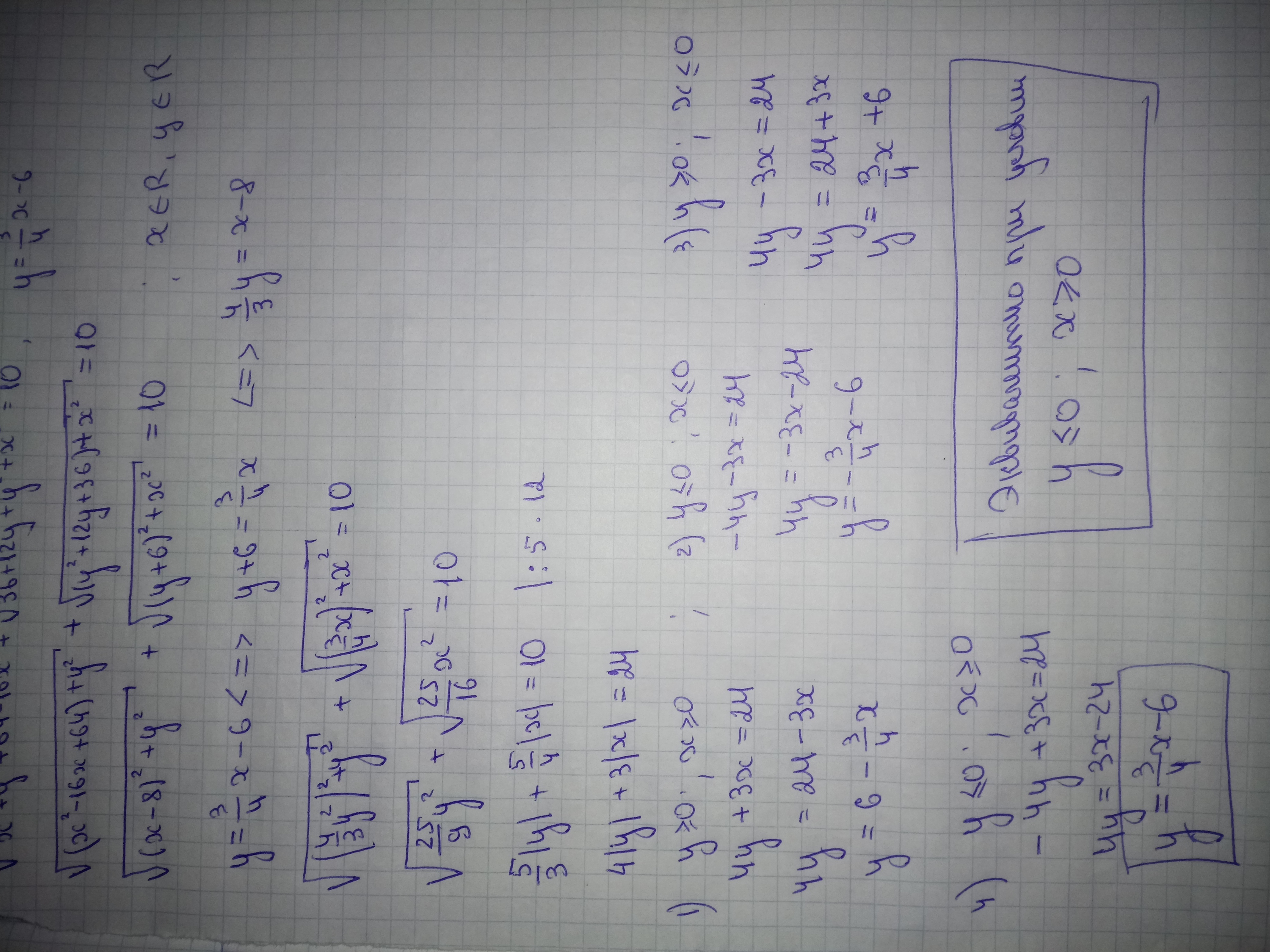 Вы поняли, что это ур-я окружности? Если да, то посмотрите на рисунок. Центры окр лежат в указанных точках, на осях. Радиус окружностей меняется.. Точка касания "гуляет" по отрезку длиной 10 (гипотенуза). Любая точка отрезка , её координаты, есть решением. Возьмем т. (4;-3), например. Подставьте в ур-е. Эта пара будет решением.