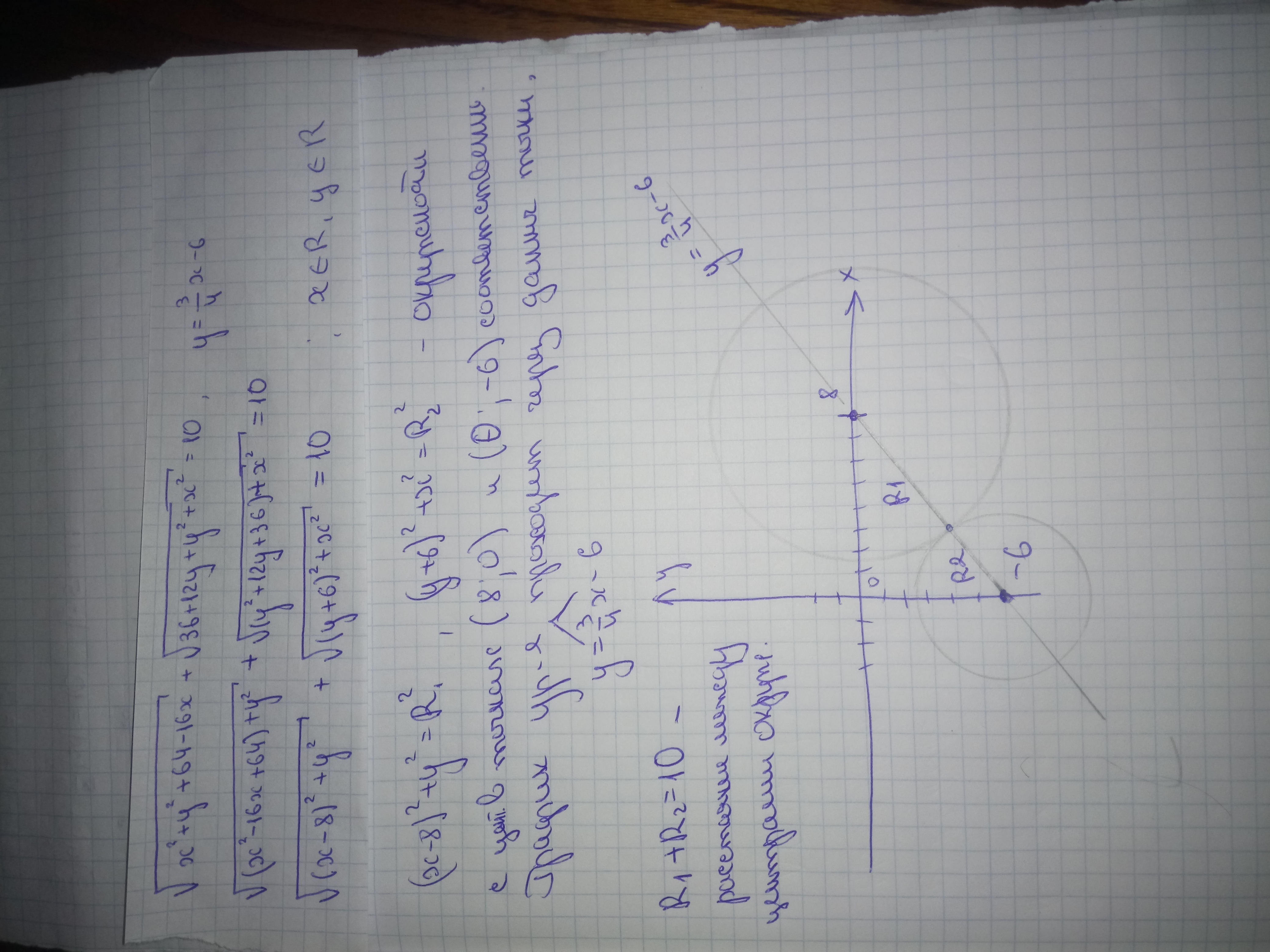 Щас я не понял, про график. Почему все точки решения уравнения лежат на отрезке, которые соединяет центры окружностей?