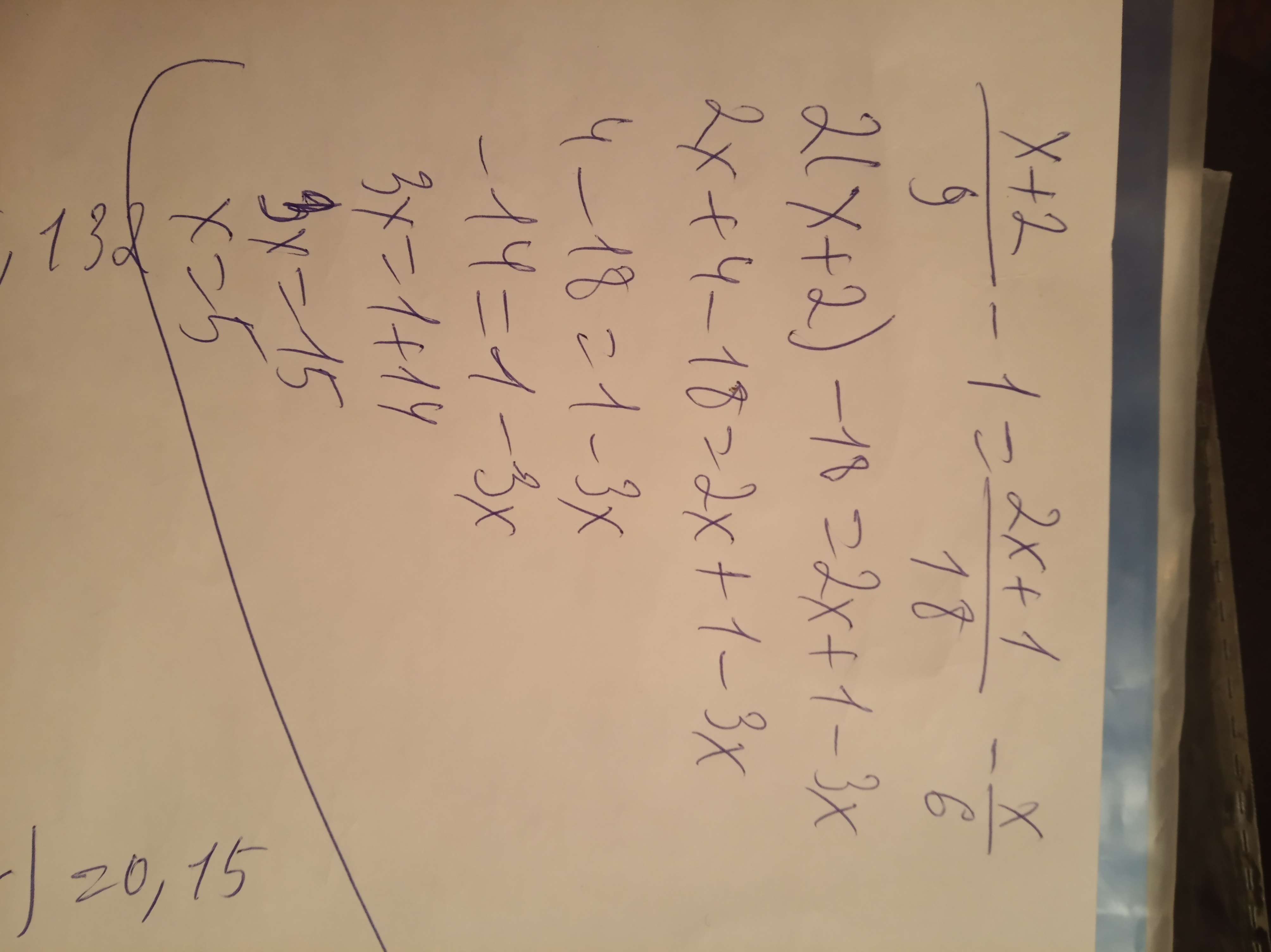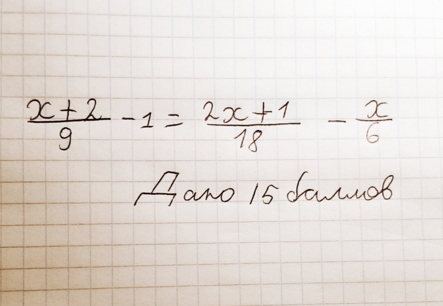 Ответ:х+2/9-1 = 2х+1 /18-х/6