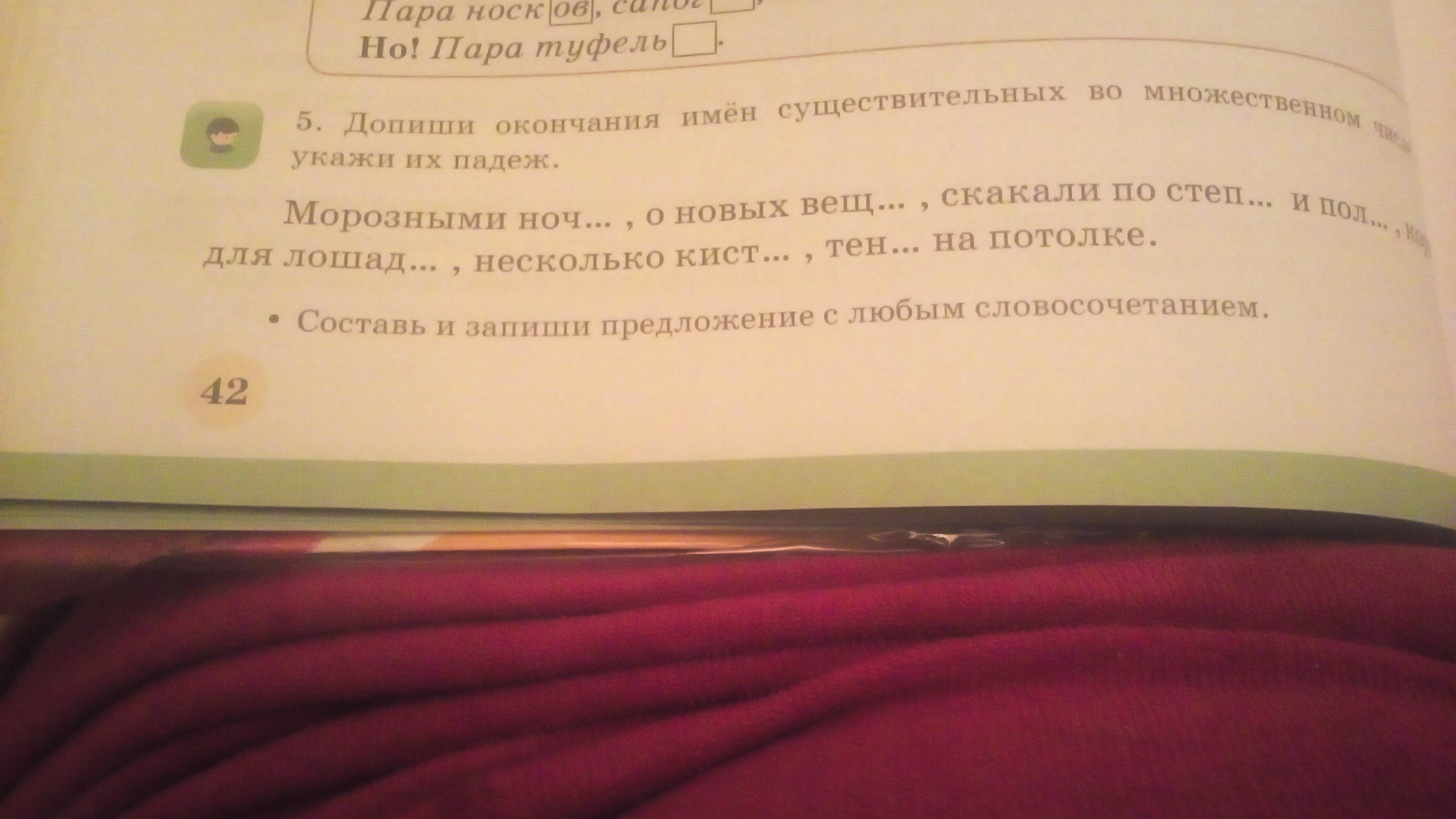 Морозными ночами, о новых вещах , скакали по степях и по полями, корм для лошадей, несколько кистей, тени на потолке . Предложение : Тени от виноградных лиcтьев лежат на потолке беcедки.
