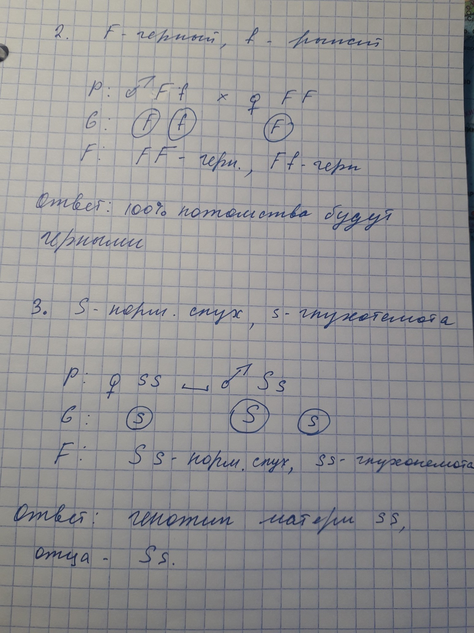 Черный цвет щетины у свиней доминирует над рыжим. Какое потомство следует ожидать от скрещивания черной свиньи с генотипом FF и черного хряка с генотипом Ff?
