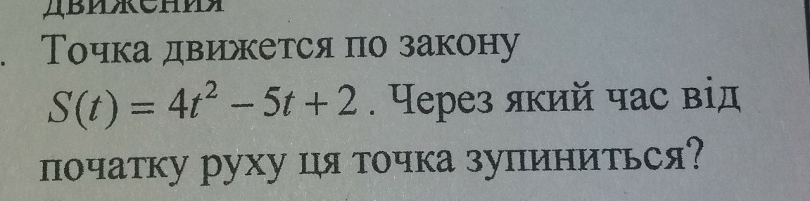 Нам потрібно знайти час коли наша швидкість буде дорівнювати нулю або інакше кажучи точка зупиниться