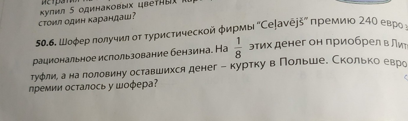 И остаётся у него 105 евро, это 105/240 3,5/8 суммы