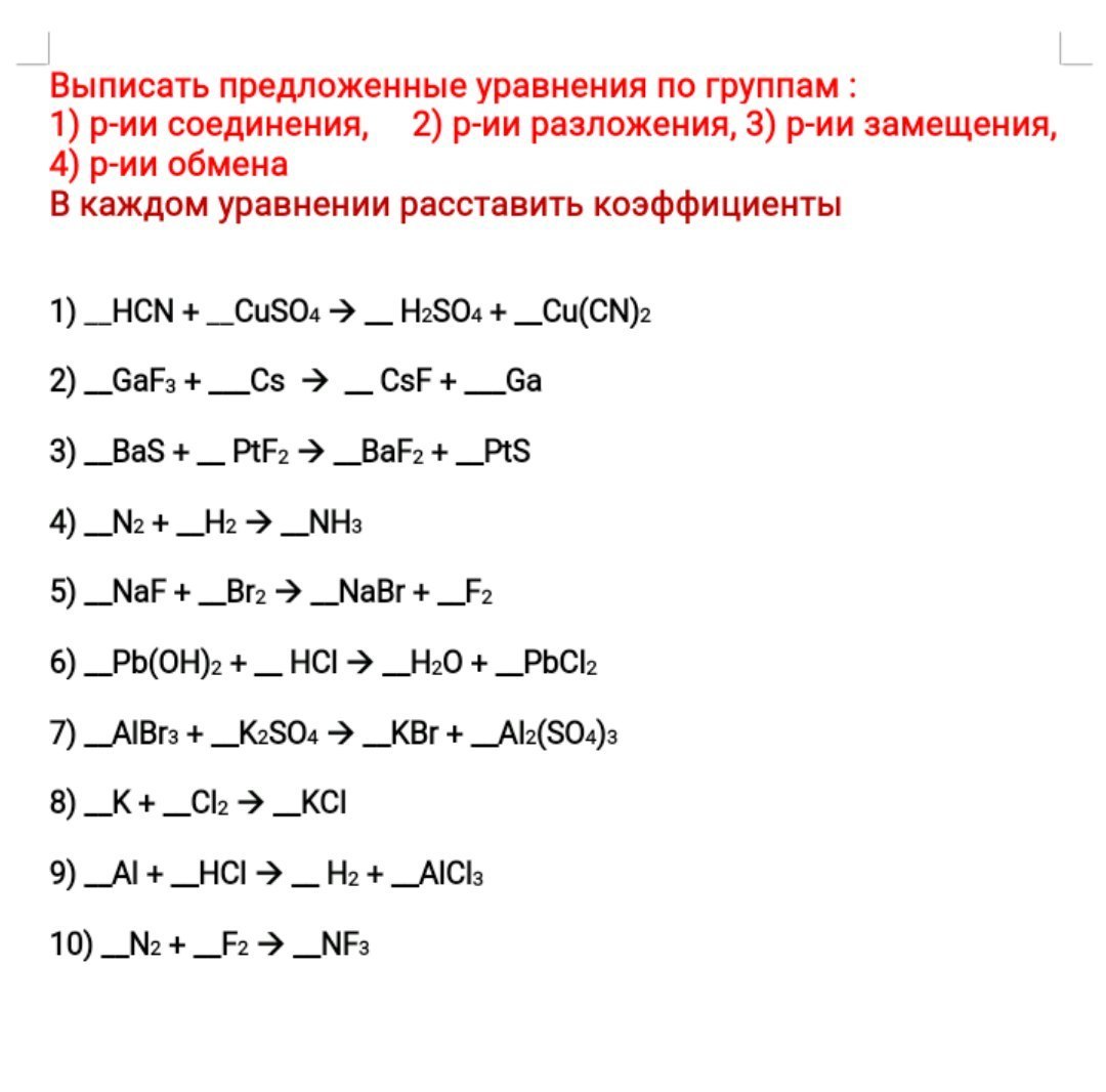 9) 2Al, 6HCl, 3H2, 2AlCl3
