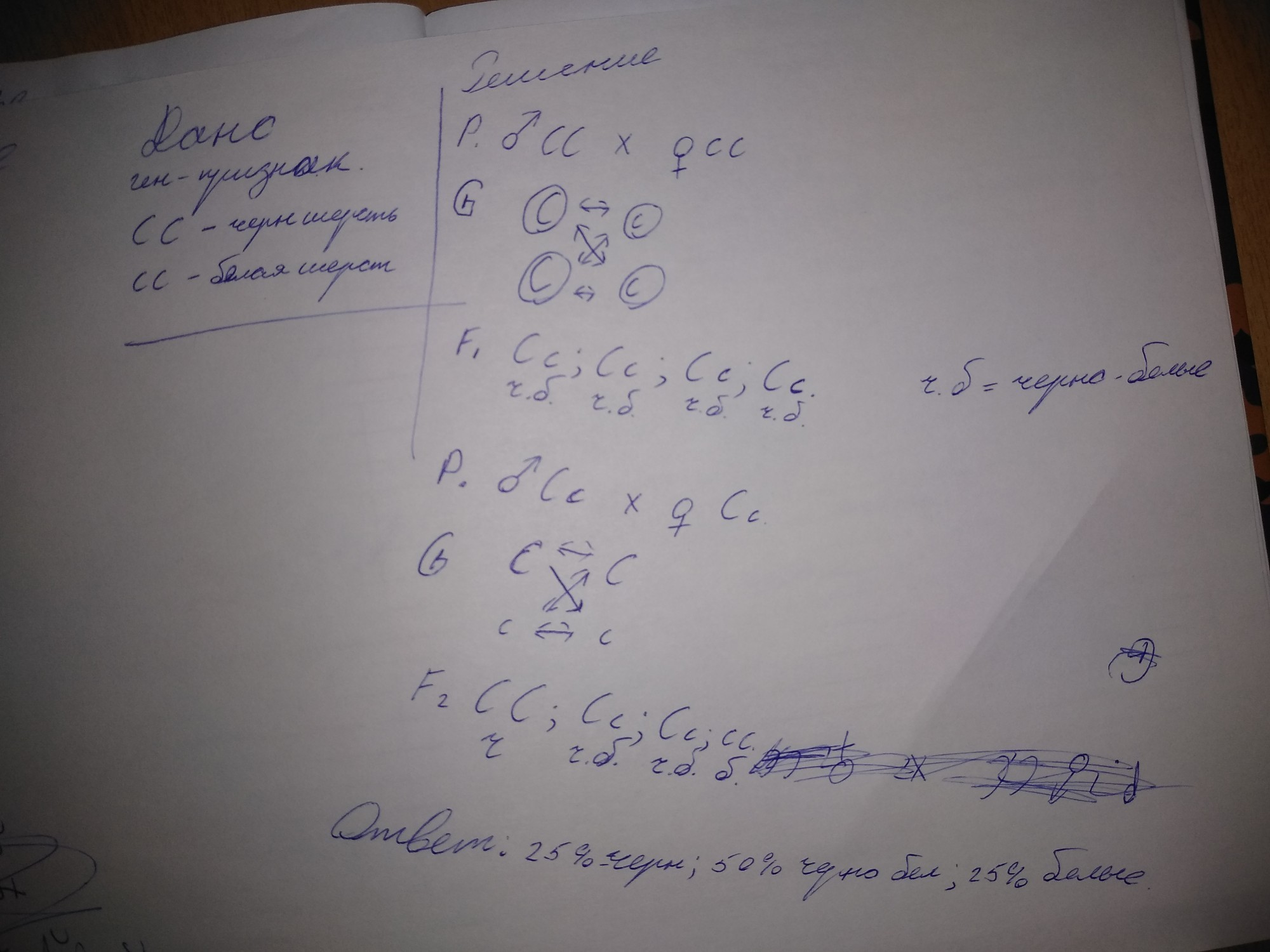 Помогите Пожалуста решить задачу вообще не понимаю как это решать Условие:С черная шерсть кошки скрещивание с белой кошкой родятся черно белые котята рассчитайте каким будет F2 при скрещивании F1 друг с другом задача на неполное доминирование