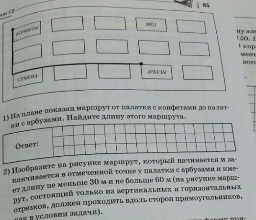 Складываем ширину ×2 (3×2) и расстояние между палатками ×2 (2×2). Получаем 10 – это длина до поворота. Дальше складываем длину ×3 (5×3) и расстояние между палатками ×3 (2×3). Получаем 21.