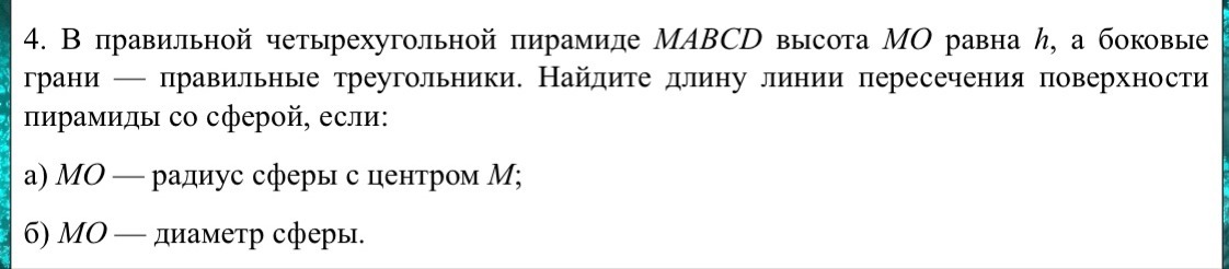 б) МО - диаметр сферы МО =h. Центр сферы точка J.