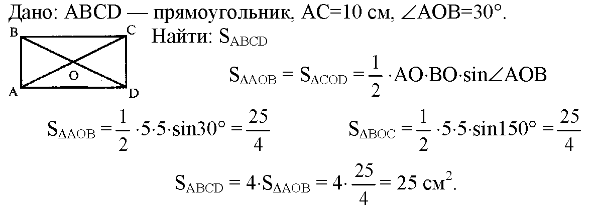 Угол между диагоналями прямоугольника равен 30 градусов . Найдите углы между диагоналями и сторонами прямоунольника.
