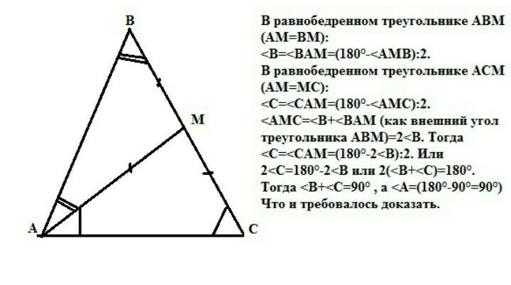 В треугольнике АВС медиана АД равна половине стороны ВС. Докажите , что треугольник АВС прямоугольный