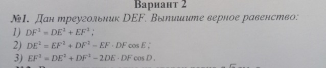 Мы не знаем, прямоугольный ли это треугольник, поэтому по теореме косинусов правильный ответ 3)