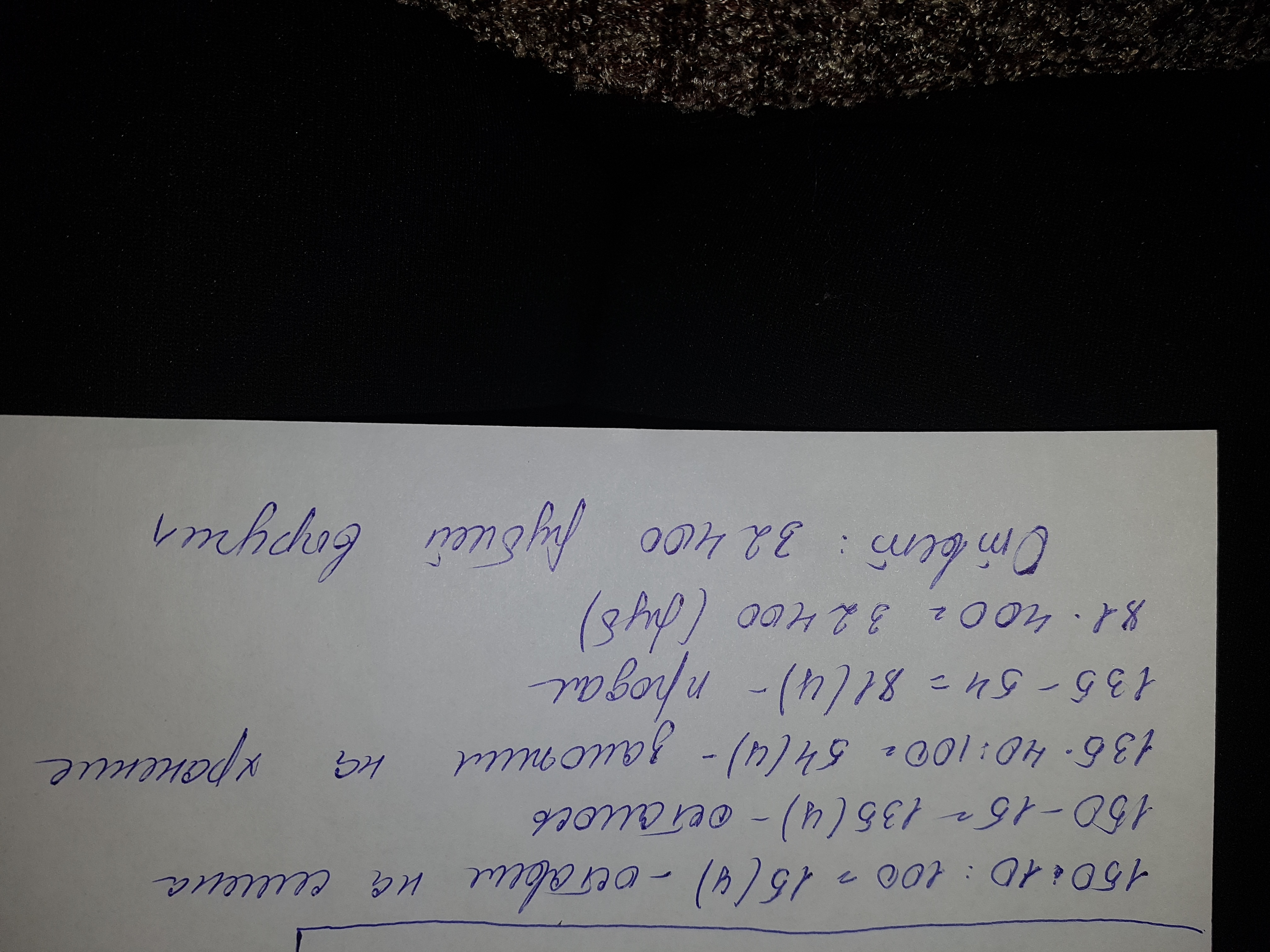 Фермер собрал урожай пшеницы в 150 центнеров. 10% урожая он оставил на семена, 40% оставшейся пшеницы заложил на хранение на элеватор, а остальную продал на рынке по цене 400 руб. за центнер. Какую сумму (в рублях) выручил фермер от продажи пшеницы?