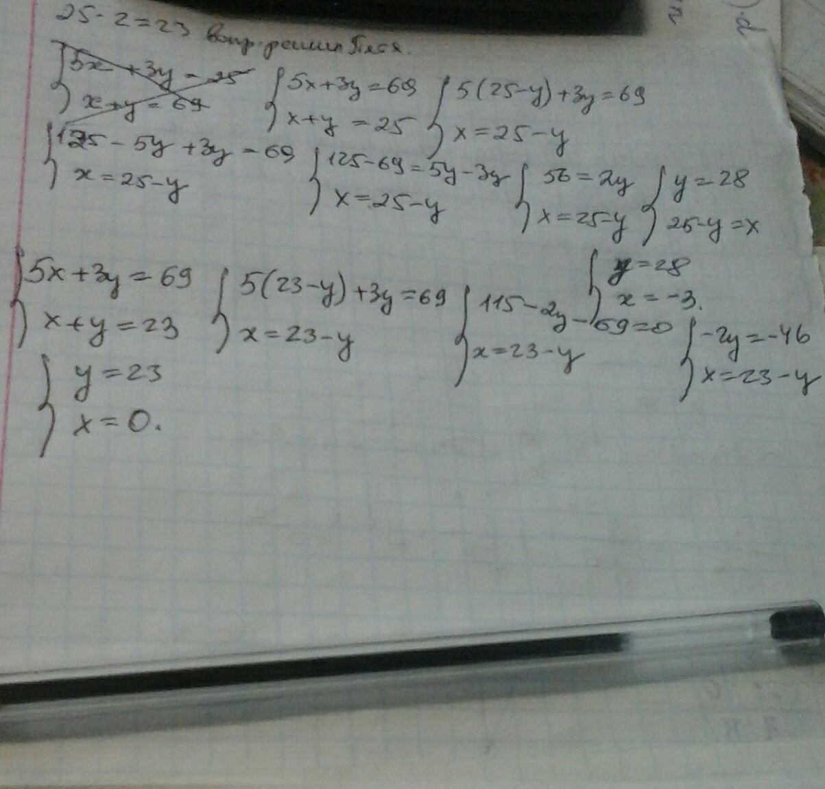 Пусть х-количество правильных ответов, а у-количество неправильных ответов. И зная, что 25-2=23 вопроса решил Петя., составис первое уравнение системы: х+у=23.