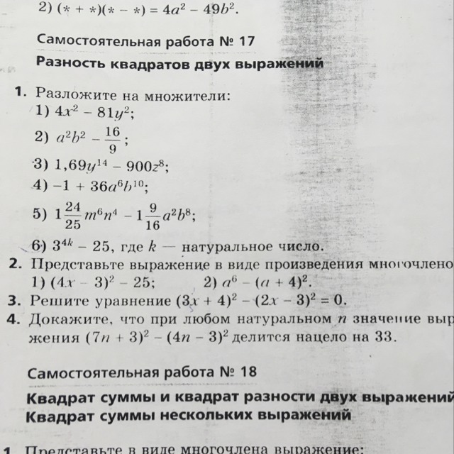 (9x^2+24x+16)-(4x^2-12x+9)=0,