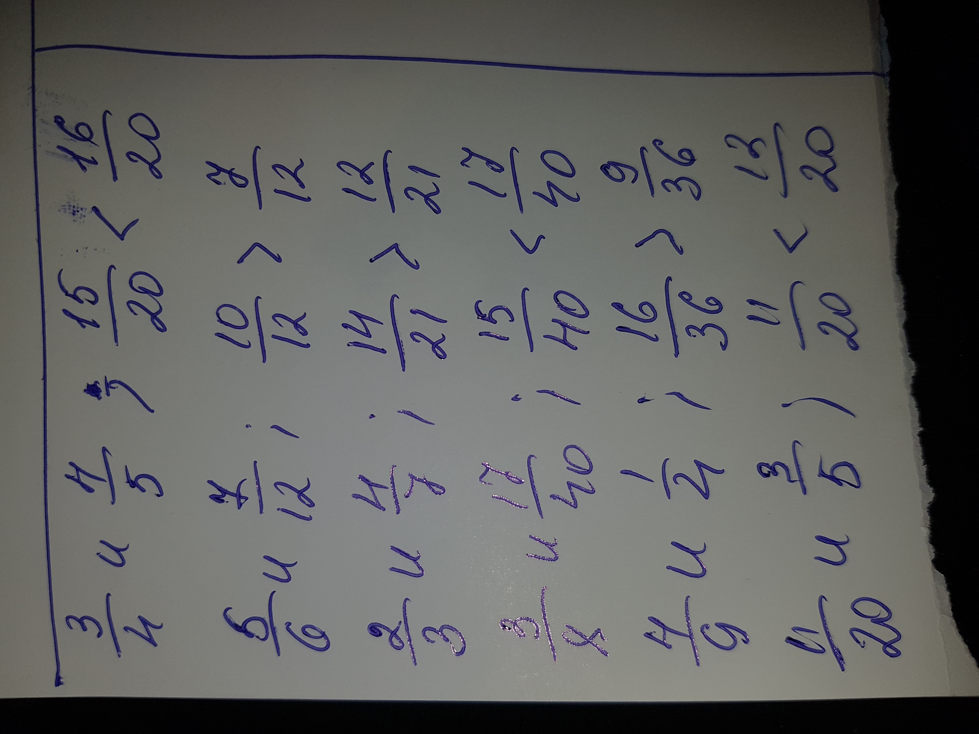 привести дроби к общему знаменателю и сравнить их 3/4 и 4/5 5/6 и 7/12 2/3 и 4/7 3/8 и 17/40 4/9 и 1/4 11/20 и 3/5