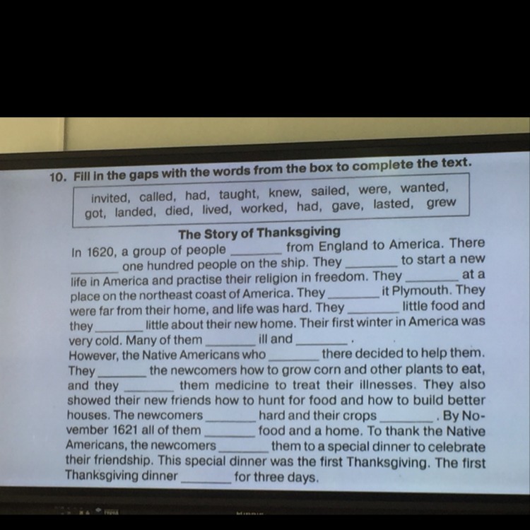 sailed, were, wanted,landed,called, had, knew, became, died, lived,taught,gave,worked,grew ,had,invited,lasted