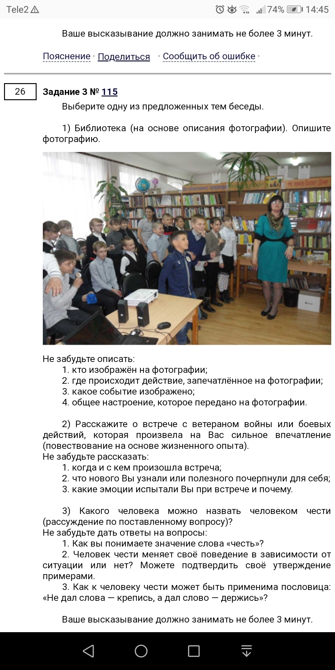 На картинке я вижу обычную небольшую библиотеку. В ней находятся учитель и дети. Учитель о чём-то рассказывает своим подопечным. Я думаю, что это что-то про родной край. Такие занятия проходили у моего брата. Дети радостны и заинтересованы. Им интересно слушать своего учителя. Их лица выражают, что они хотят еще подобной информации. Я считаю, что так и должно быть. Учитель должен рассказывать так, чтобы было интересно, тем, кто слушает.