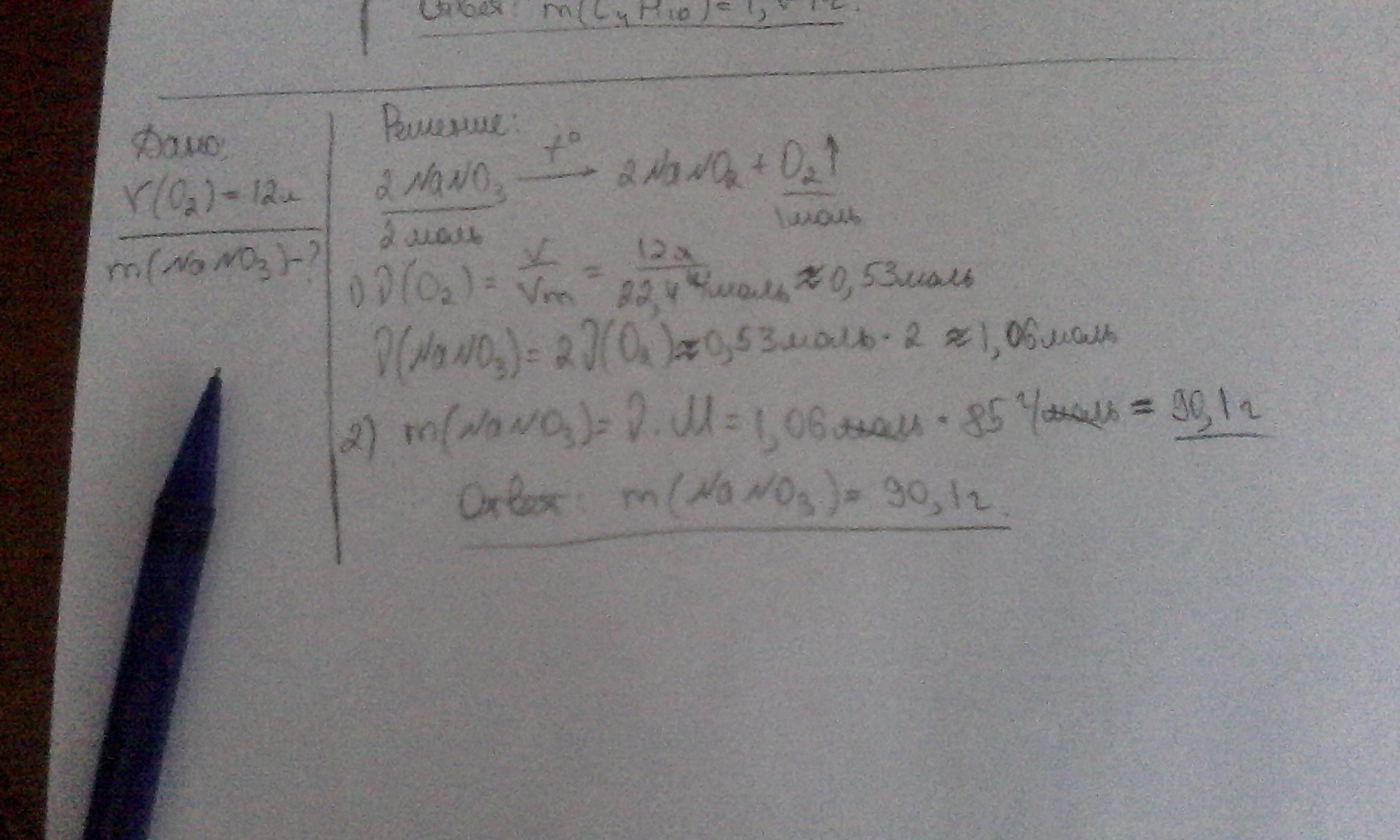 При разложении нитрата натрия образовались нитрит натрия и 12 л кислорода. Вычислите массу разложившейся соли.ПОЛНОЕ РЕШЕНИЕ!!!СПАСИБО