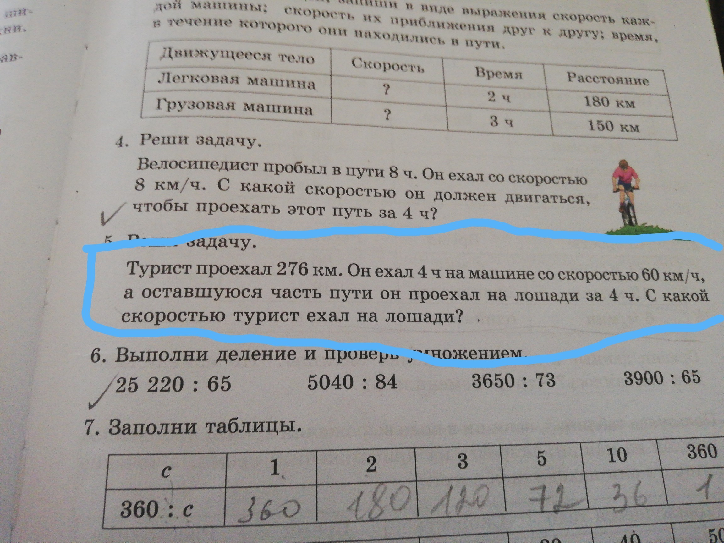 60*4 получаем расстояние первой части, 276-240 это расстояние второй части и 36 делим на 4 получаем скорость. Ответ 9 км/ч